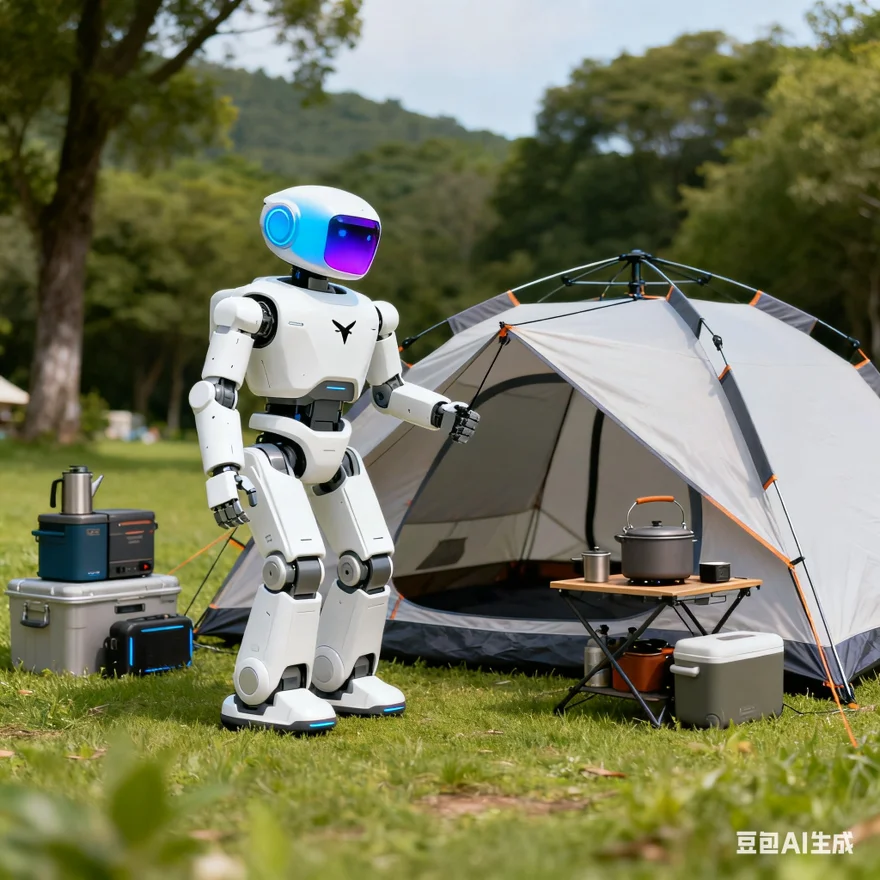郊外的露营地旁,小鹏Iron正站在野餐垫边,一手用便携炉具加热食材,另一手将切好的水果摆成拼盘。当用户想要拍摄营地全景时,它主动调整至“支架模式”,用机械臂稳稳托住手机,还能根据用户的指令调整拍摄角度与滤镜参数。待露营结束后,它负责收纳帐篷与装备,将折叠好的物品按重量分层放入后备箱,同时检查是否遗漏了小物件。这个场景中,Iron打破了“室内机器人”的局限,通过防水、便携的设计适配户外环境,让用户在休闲场景中也能享受智能助手的服务,让露营从“繁琐准备”变成“轻松体验”。
