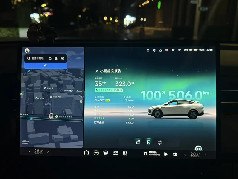 提车后首次打卡小鹏云密城超充站,指引具体而详细,体验直接超出预期。之前还担心电动车充电麻烦,没想到全程省心又高效。用APP就能精准查空闲桩、导航直达,车位宽敞,新手也能轻松停入。充电枪特别轻便,女生单手就能插上,支持即插即充,不用扫码输密码,车机自动识别启动,全程不用下车折腾。