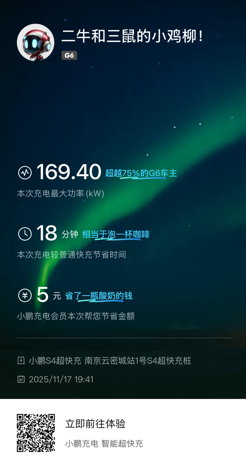 彻底告别续航焦虑,小鹏G6的800V高压平台+超充服务,把补能变成了惬意的小事。不管是日常通勤还是长途自驾,都能快速补能、说走就走,这波体验必须给满分!