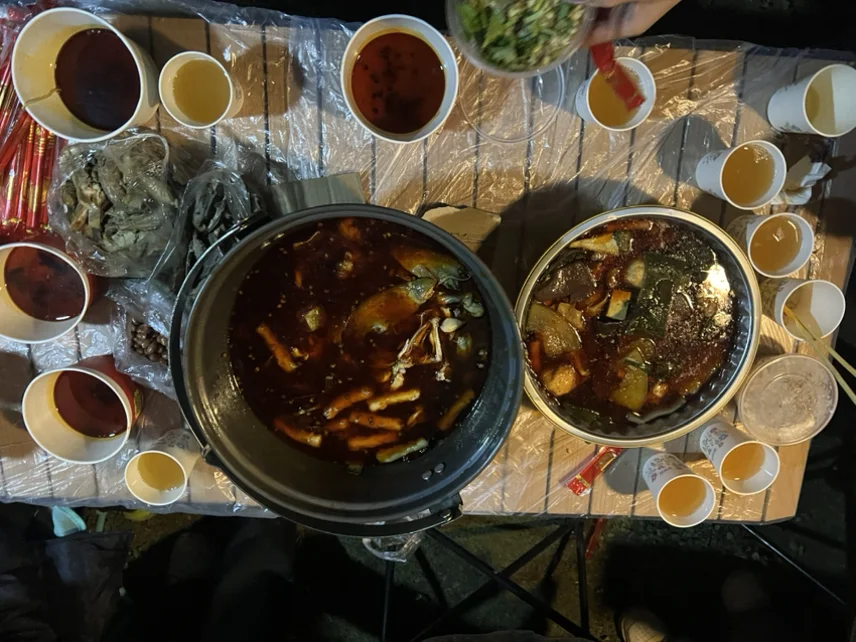 今年国庆期间某个下午扎营在近月湖湖边,刚把小桌子摆好,哥就扛出提前腌好的肉和火锅食材。一家人围坐草坪,一边煮着麻辣鲜香的火锅,一边玩狼人杀,笑声能飘到湖对面!火锅里的湿地冷水鱼超嫩,裹上香油碟,连不爱吃鱼的侄子都抢着吃,配上冰镇饮料,这才是国庆该有的样子~
