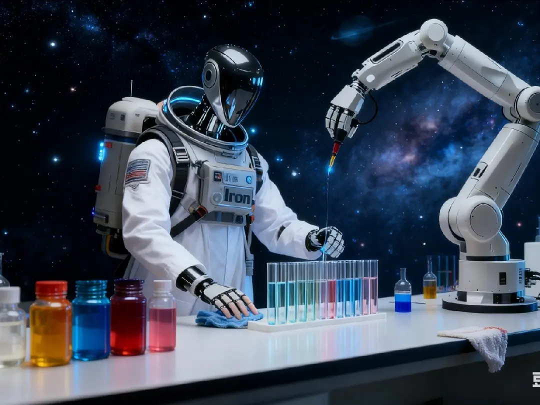 当清晨的科研数据刚在屏幕上闪烁,我揉着惺忪的睡眼走进实验室时,小鹏 Iron 已经穿着白大褂站在实验台前了 —— 它正稳稳拿着移液器,把试剂精准滴入试管,每一滴的量都分毫不差