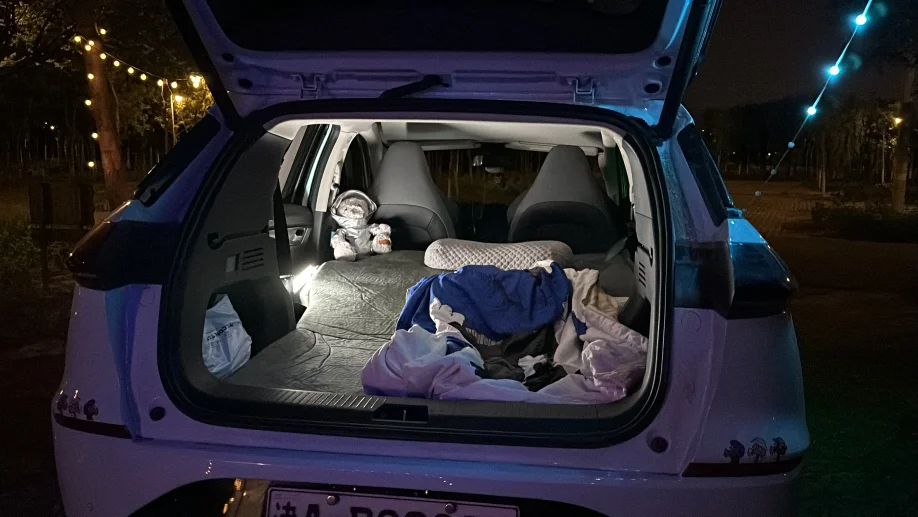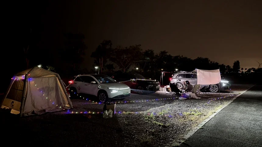 还记得第一次解锁车门的心跳,就是露营🏕️,人生的第一次露营就在此刻,这里重点要夸一夸小鹏的「外放电功能」,简直是露营和户外活动的神器!💡