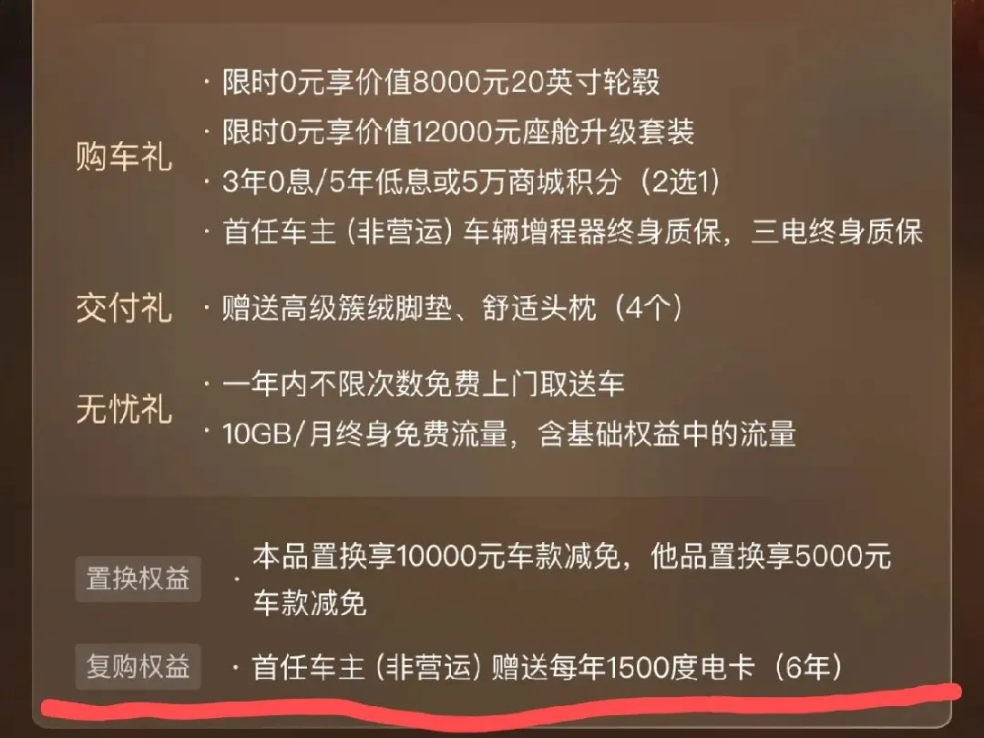 强烈呼吁小鹏能出一个选项给老车主,这个复购权益除了赠送6年每年1500度电以外,增加一个别的选项,让老车主也能够享受到复购的真正权益。