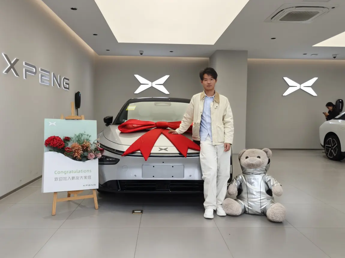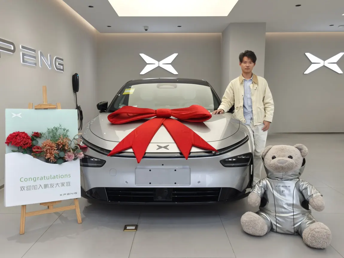 交付仪式虽然简单但很温馨,工作人员为我准备了小鹏定制的纪念品,并帮我与爱车拍摄了第一组合影。我选择的 “新月银“配色在阳光下格外耀眼,流线型车身与贯穿式LED灯带的组合,确实让人有种从科幻电影中走出来的感觉。