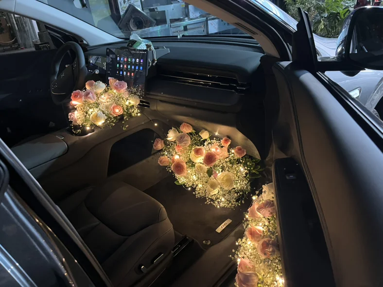 #100万个心动瞬间# @鹏友俱乐部 小鹏陪我给我老婆带去的第一个惊喜。哈哈,之前道具是冰箱,现在多个小p。花在车上放了两天,舍不得丢。期望小鹏可以跟我干更多意义的事情,去创造更多温暖,心动且值得纪念的点点滴滴。鲜花,夕阳,日出,露营,家乡还有小p.