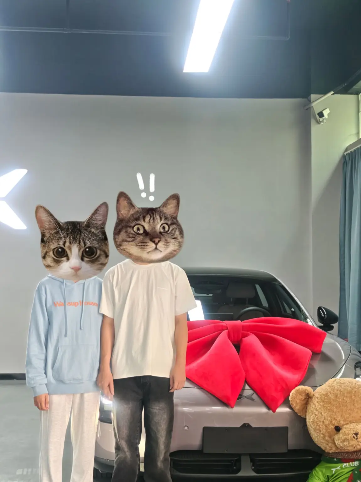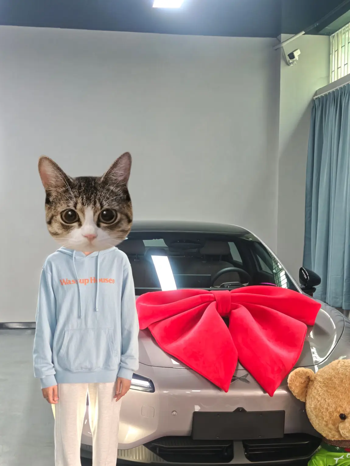 紫色车身在阳光下更好看,跟小橘的毛色也挺搭的吧,送的盲盒小熊也是棕色的那款,小熊那件衣服是可拆卸的,给小橘穿上真的是刚刚好,小橘也是要成为小鹏友