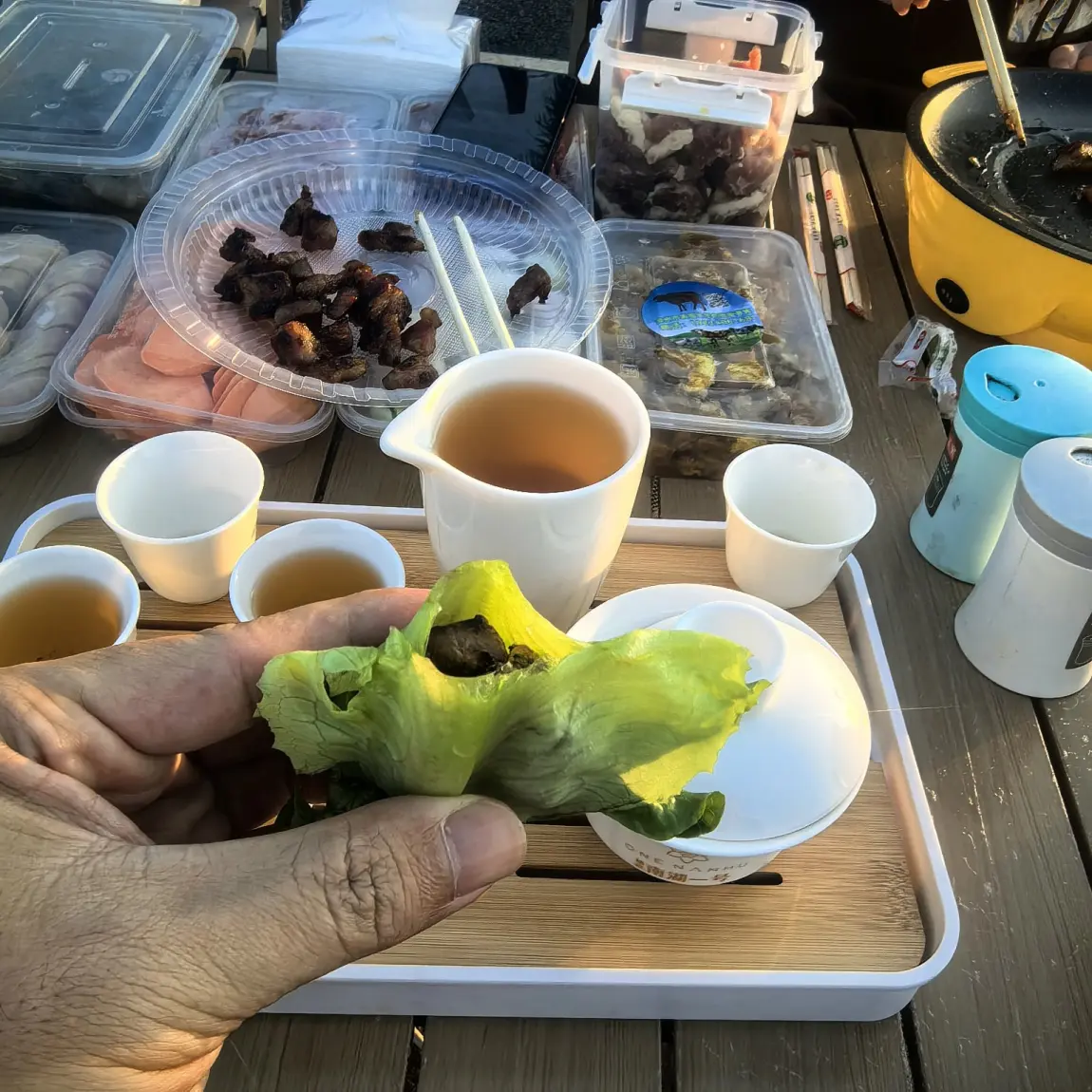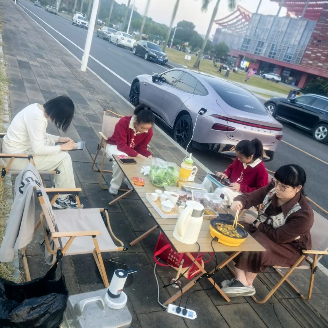 1. 周末带上家人开上小P,寻一静谧之处,烤肉滋滋响,茶香绕鼻尖,抬头是渐染橘红的落日,身边是吵吵闹闹的家人。幸福本就很简单,不用追赶时间,此刻的静谧与热闹,都是最好的时光。烤肉的焦香、茶的清甜,混着落日的温柔,每一帧都是想珍藏的家庭小确幸。