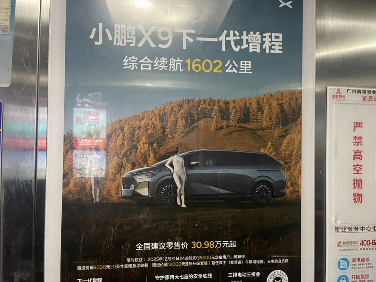 小区电梯都换上小鹏X9广告了