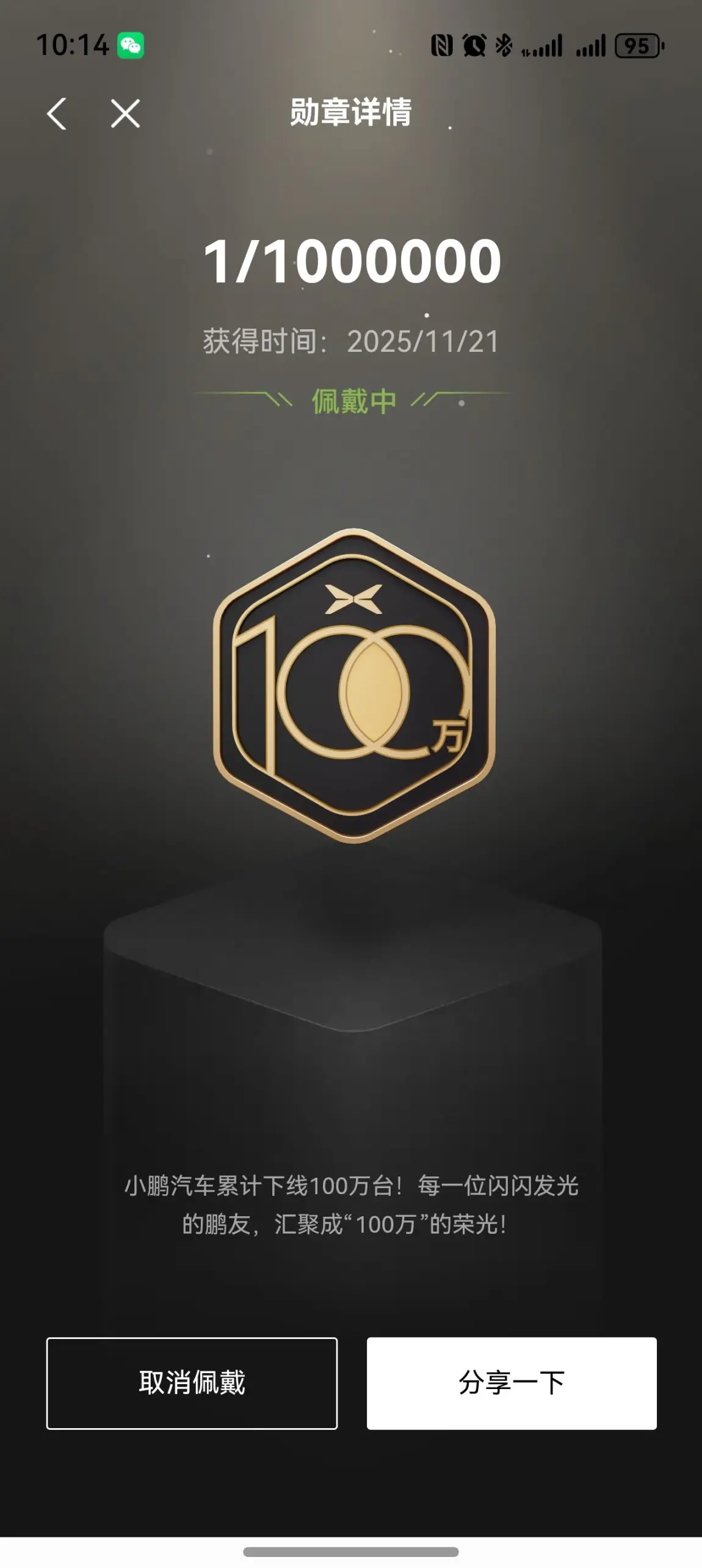 2025年11月,小鹏汽车达成第100万台汽车下线,前两天也是我的小鹏P7提车4周年的日子,值得庆贺。2021年11月18日,我的小鹏P7提车,至今已陪伴我度过4个年头,P7凭借优秀的设计,出众的外观和科技感十足的配置,是当年新能源车中的爆款,到今天,颜值依旧出众。这一路走来,小鹏汽车的发展也有过起伏,有过低谷,但随着M03等一些列新车的上市,小鹏汽车的发展也越来越稳,尤其是2025年,小鹏汽车销量连续保持在新势力前三,成为第三个实现100万台新能源汽车下线的新势力品牌,恭喜。今年,我家也贡献了一台M03,10月份刚提车,提车服务很不错!#小鹏汽车#