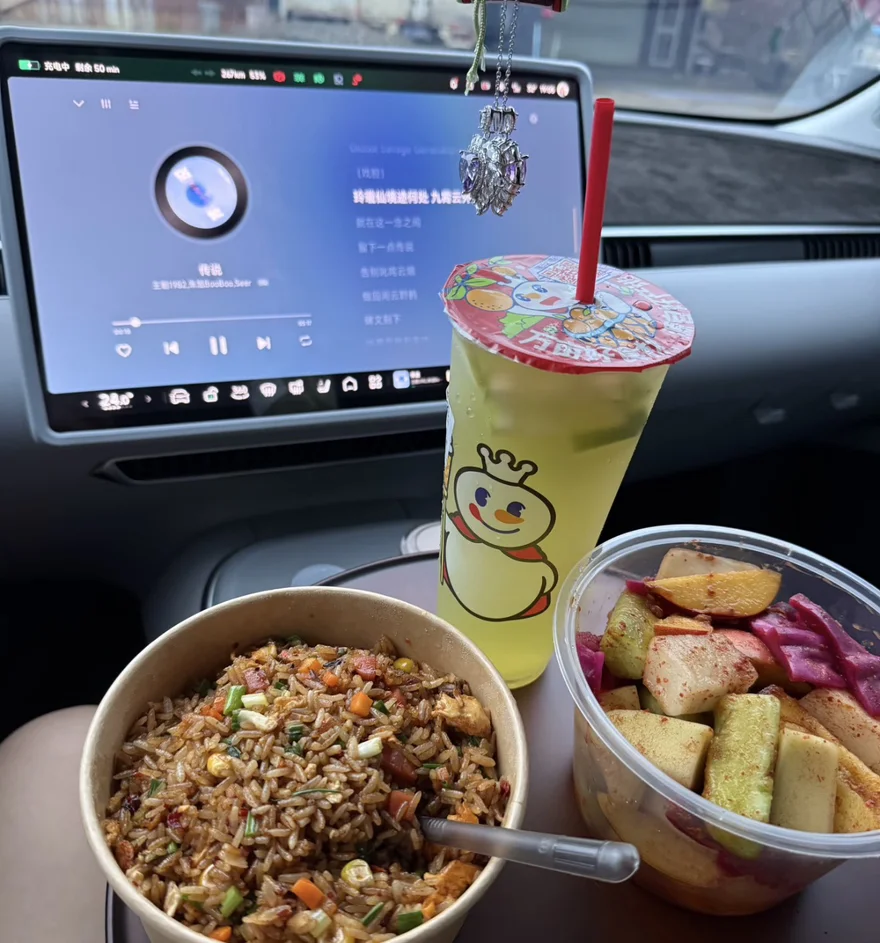 最常霸占副驾的是老婆,这个位置早被她贴上了“专属标签”。她总说MONA的副驾是“治愈系座舱”——座椅柔软贴合,长途出行时调平靠背就能半躺着追剧,扶手箱里永远囤着她爱的坚果和奶茶,中控屏还能同步她的歌单。
