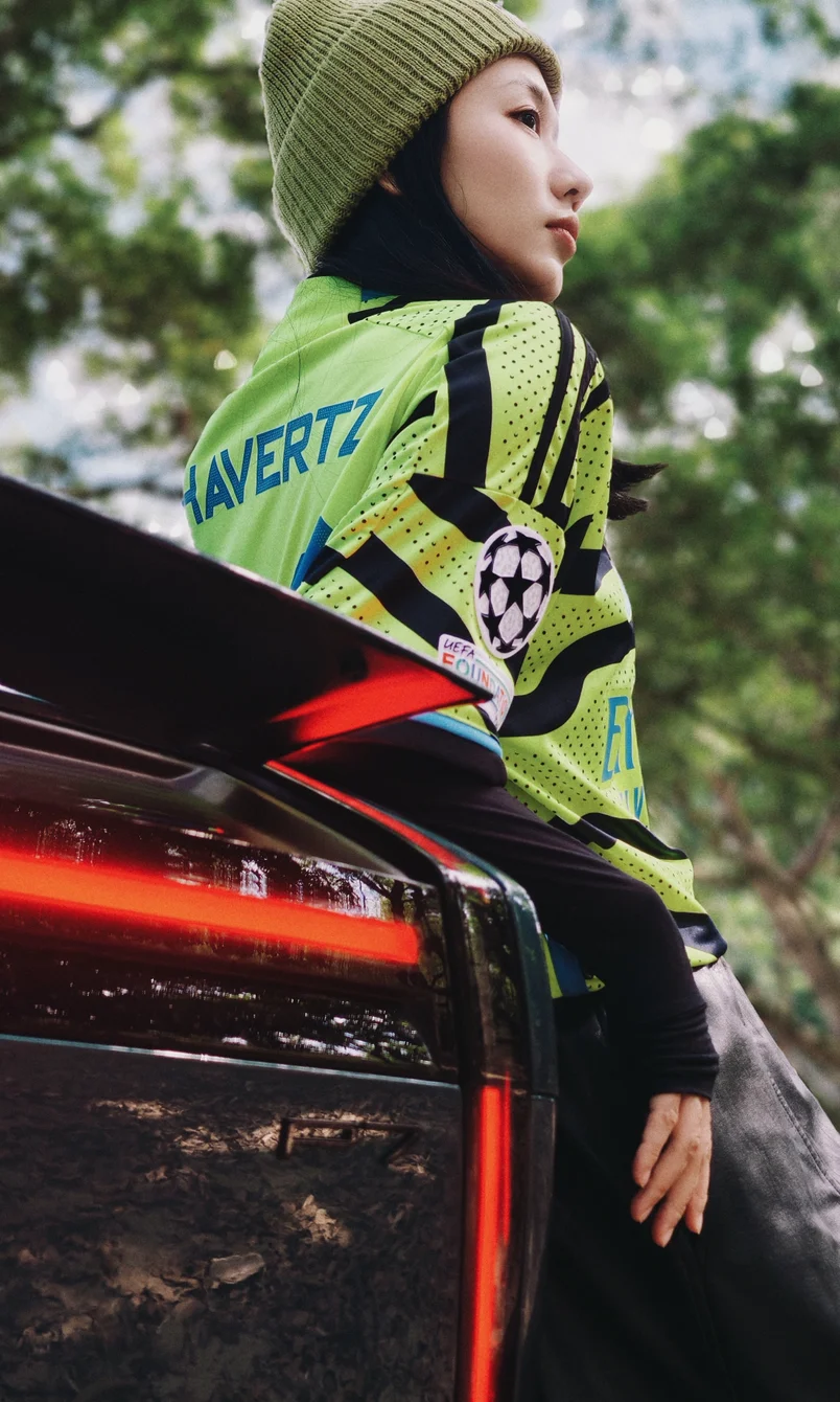 💚 球衣穿搭不再只是球迷专属,秋天配上宽松阔腿裤,随性又时髦。绿色球衣的跳色让整套 ootd 多了点青春能量,在车边靠一下就是「秋日森林球衣大片」。新 P7 的造型感太强,随便一靠都能把风格推进一档,酷、松弛、氛围感一次到位。#智美女鹏友# #最美P7摄影大赛#