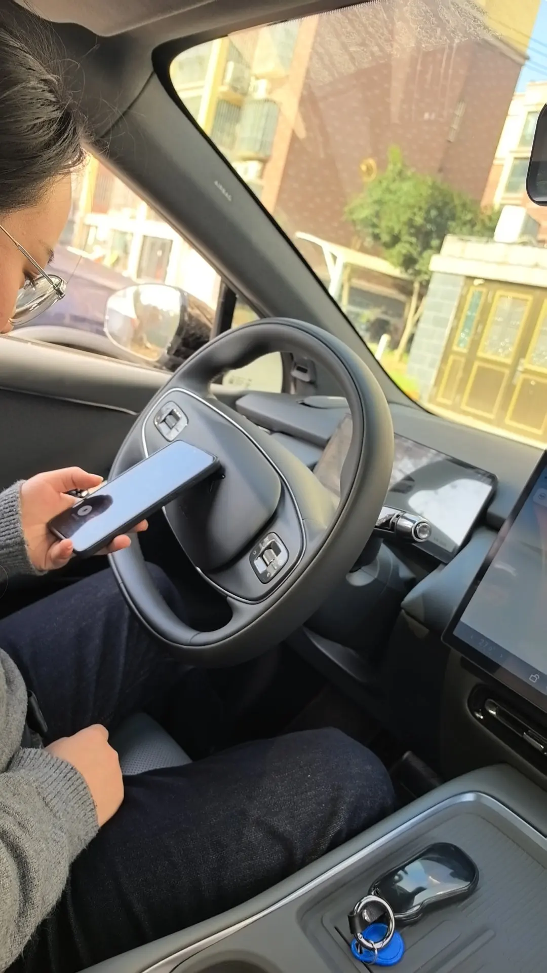 今天老婆第一次开小鹏,我也第一次自己坐自己车的副驾感觉还不错哦😜