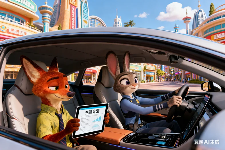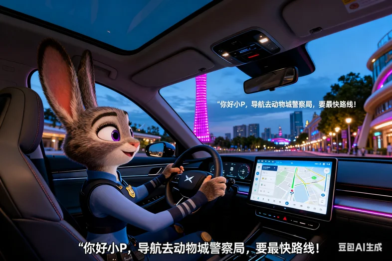朱迪警官一坐进主驾就切换工作狂模式,爪子轻点方向盘喊:“你好小P,导航去动物城警察局,要最快路线!”中控屏立刻弹出最优路线,连耳尖都透着认真劲儿,这效率不愧是警队标杆!