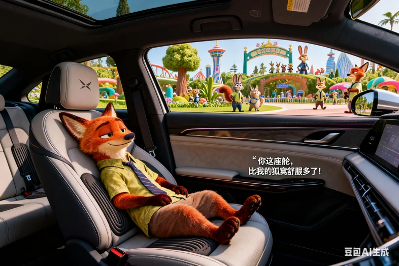 副驾的尼克秒变慵懒大佬,一键开启座椅按摩,舒服地眯起眼感叹:“这座舱比我的狐窝舒服多了,简直是移动摆烂神器!”毛茸茸的尾巴还跟着座椅律动轻轻摇晃,反差萌拉满~