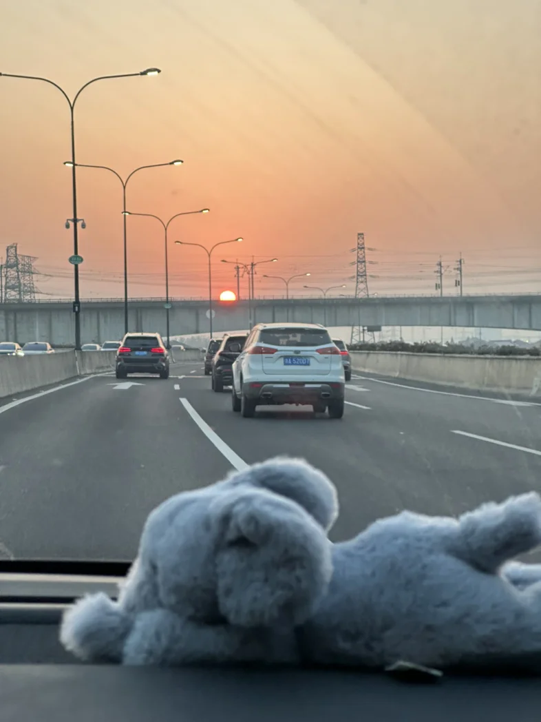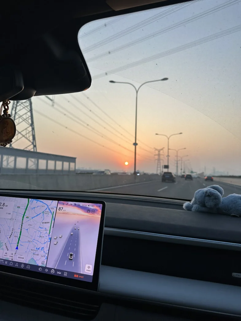 坐在副驾上,有老公接的日子,惬意地听着喜欢的歌,欣赏窗外的风景。还有一只可爱的小象,陪伴着我们,见证着我们。这就是幸福的具象化吧。