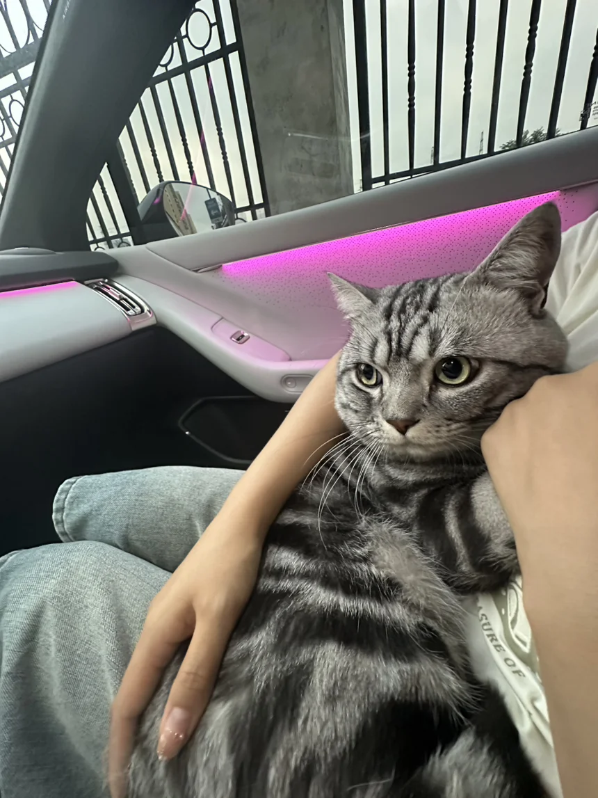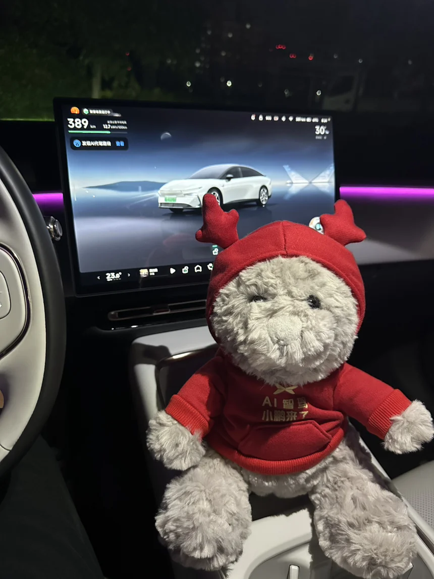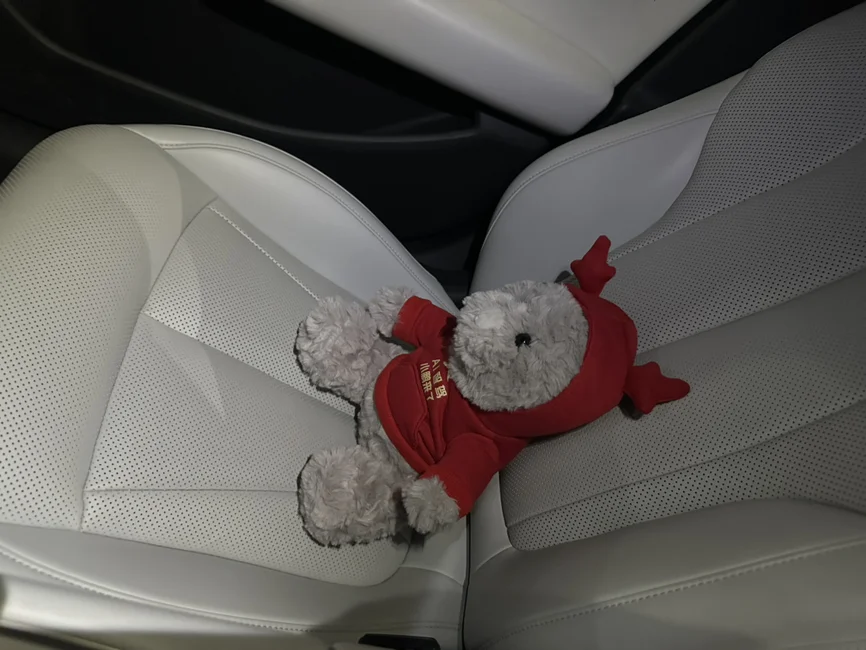 #我的副驾故事# 小鹏P7+当然和小咪咪最搭配哦第一次带猫猫出去玩,在车里东张西望的,可爱极了,我们去吃饭的时候,饭店不让带宠物进去,幸好P7+有宠物模式,打开宠物模式,小猫在里边和小鹏的小熊一起玩,舒服的很,真不错啊,真不错