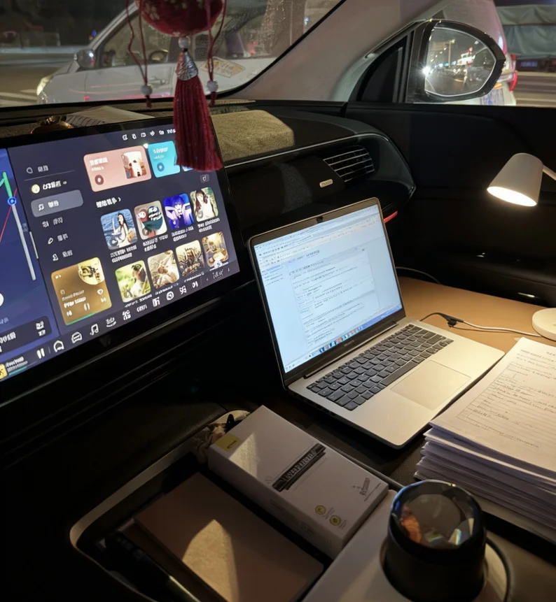 #我的副驾故事# 小鹏G6副驾是我的移动「第三空间」:支起平板敲方案,无线充稳托着手机,是高效工作角;连上车载屏追番,软靠垫裹着身,秒变私人放映厅;放倒座椅铺好绒垫,遮光帘一拉,暖光裹着轻晃的香薰,闭眼就是午休小窝,通勤间隙也能把日子过成松弛感。