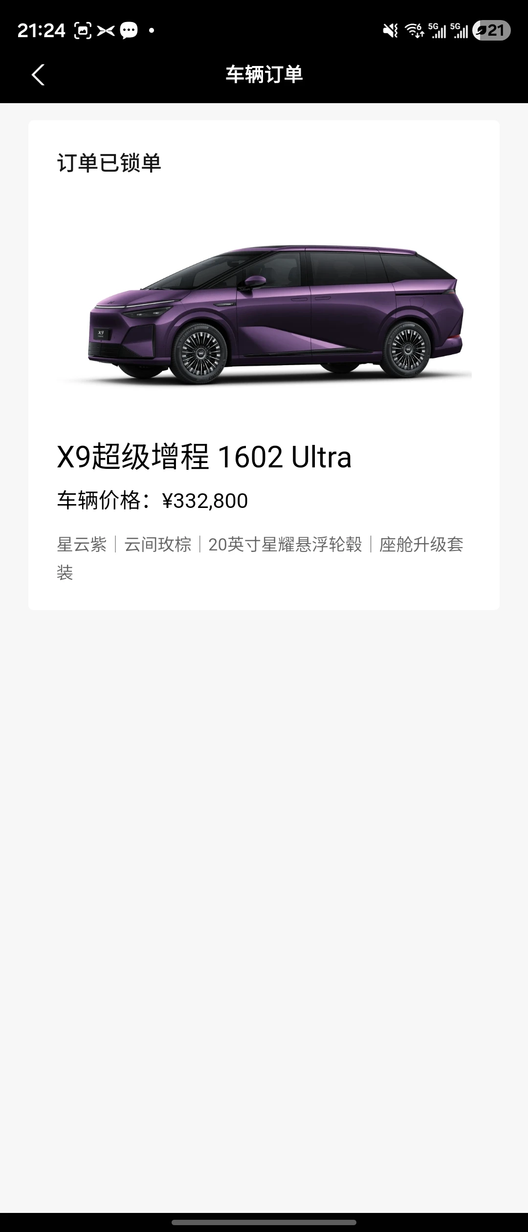 1.选择的小鹏X9超级增程ultra,紫色外观红棕内饰,