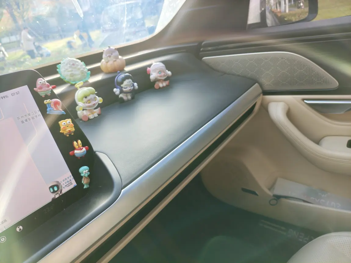 #我的副驾故事# 我的副驾有很多盲盒摆件,因为我老婆坐副驾比较多,她又喜欢泡泡玛特盲盒,她说看到这种可爱的玩意心情会好,因悦己而摆了好几个。中间屏幕上的海绵宝宝是我儿子贴的,小孩子也是喜欢可可爱爱的玩意。副驾上摆的玩偶是我放的,用车较多,老婆不在的时候,还是希望副驾上有“人”帮我押车。