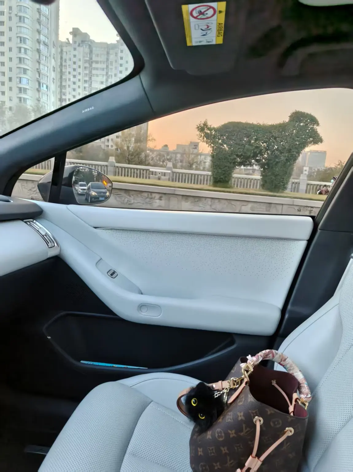 一个包包、一个喵星人挂件,女王副驾变成了主驾,副驾就略显冷清和单调。但这只是外人看来,因为窗外有美景,心中有日月,丝毫不影响女王的美丽心情😄😄😄