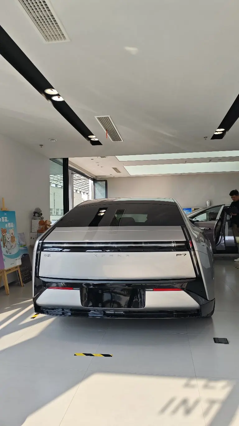 提车那天的阳光都像加了滤镜,走进交付中心就一眼锁定了我的星月银P7——低趴宽体的轿跑姿态配着贯穿式光翼尾灯,比图片里更显灵动,系着的大红花让这场“开箱”仪式感拉满。绕车验车时忍不住反复摸了摸无框车门,漆面光滑无瑕疵,轮胎和出厂日期都是新鲜出炉的,工作人员还耐心讲解了细节,全程没有踩坑的糟心感。