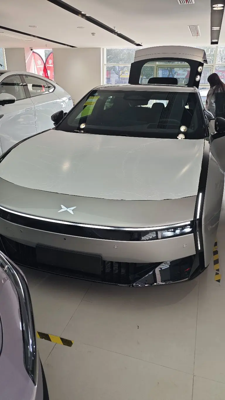 提车那天的阳光都像加了滤镜,走进交付中心就一眼锁定了我的星月银P7——低趴宽体的轿跑姿态配着贯穿式光翼尾灯,比图片里更显灵动,系着的大红花让这场“开箱”仪式感拉满。绕车验车时忍不住反复摸了摸无框车门,漆面光滑无瑕疵,轮胎和出厂日期都是新鲜出炉的,工作人员还耐心讲解了细节,全程没有踩坑的糟心感。
