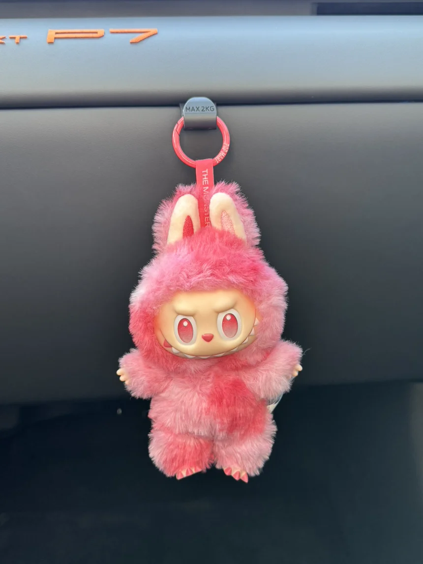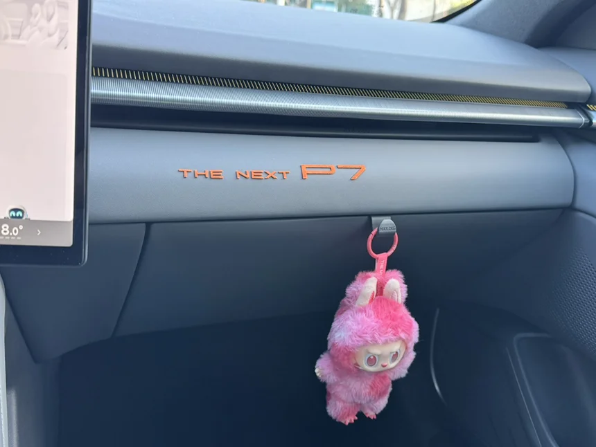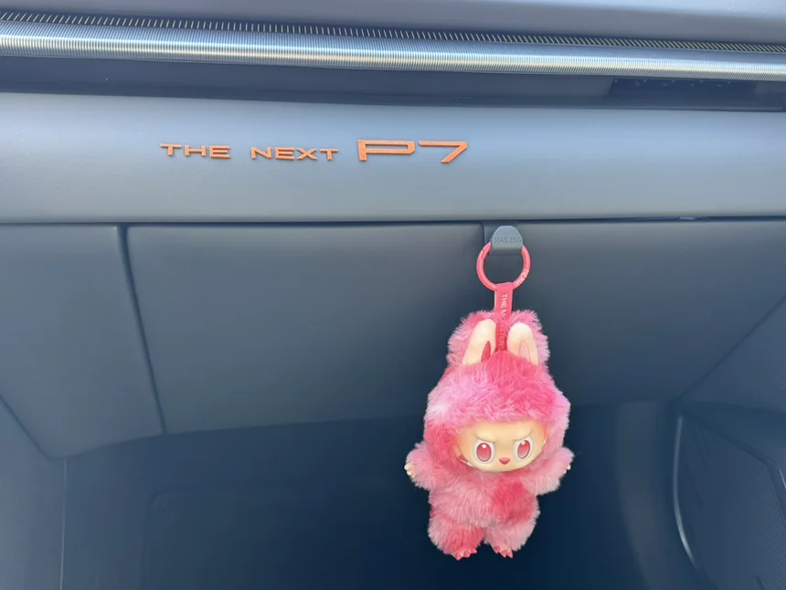 #我的副驾故事# 我的副驾留给了可爱的拉布布。小鹏新P7手套箱自带的挂钩是个隐藏小彩蛋。有了它就不用自己再买配件了。平常正好可以挂个labubu,搭配上车机大屏后面的另一只labubu,每次出行就有它们陪我一起了。