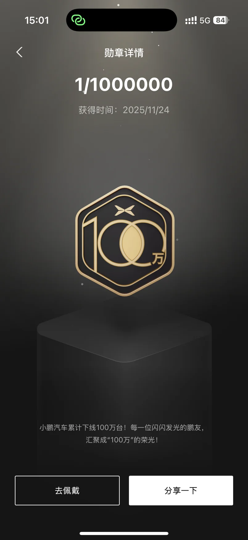 #小鹏汽车# #小鹏汽车第100万台下线# #小鹏智能服务#百万有我,与鹏同行!🎉7年深耕,14个月实现50万到100万的跨越,小鹏的百万里程碑,是技术自研的坚守,更是每一位鹏友的信任浇筑。从纯电到增程的双能布局,从智能座舱到XNGP的持续进化,它让科技不再遥远,让出行满是惊喜。有幸成为这百万分之一,见证中国智造的速度与温度,愿下一个百万,仍能携手,共赴更智能的未来!100万台,是100万个心动瞬间,更是无数次安心相伴。感恩每一次技术迭代的用心,珍惜每一段风雨同舟的旅程。下一个百万,继续一起,解锁更多出行可能~