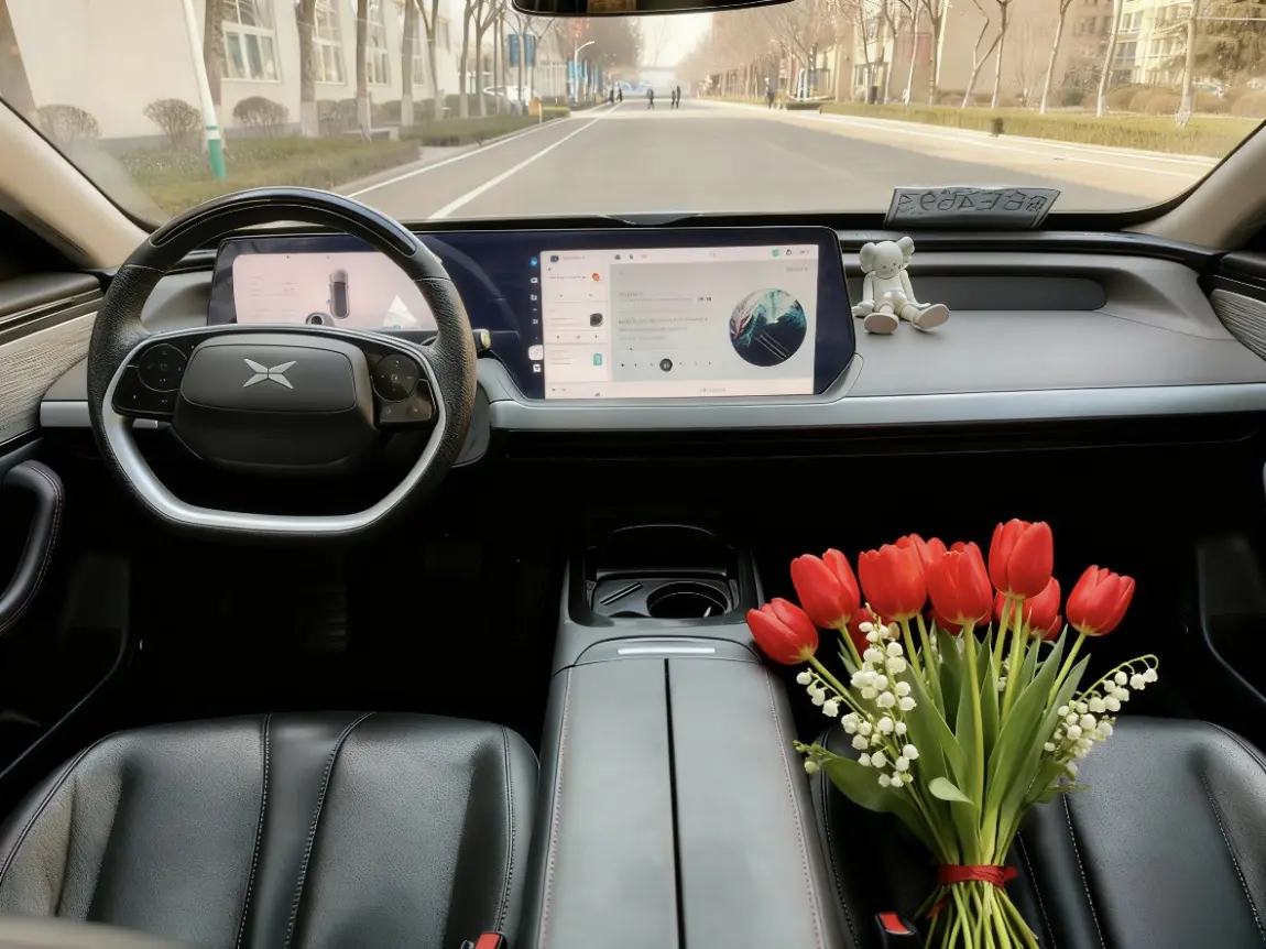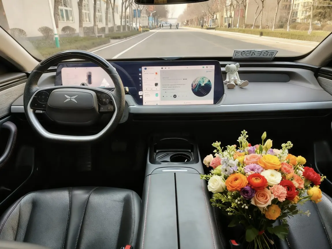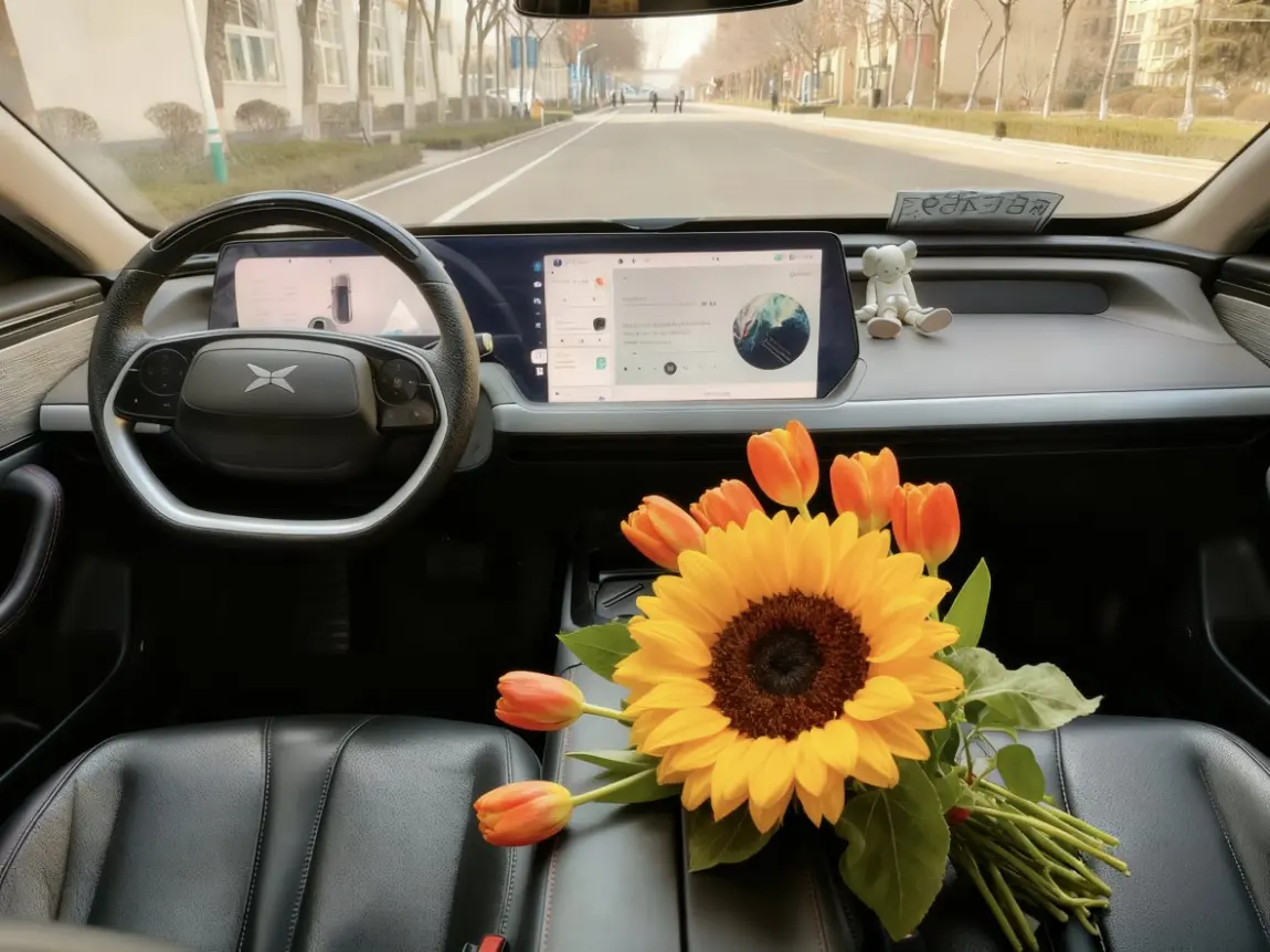 #我的副驾故事# 我的副驾是移动的“小花园”——今早是裹着雾面纸的香槟玫瑰,傍晚换成沾着水珠的洋甘菊,周末索性塞了捧撞色洋桔梗。小鹏G7的副驾台面刚好容得下花束,方向盘旁的香氛混着花香,连导航播报都裹了层甜意。上周放了束带着晨露的向日葵,等红灯时邻车姑娘摇下窗问“花哪买的”;昨天换了清雅的白百合,连车载香薰都省了。每次拉开车门先撞进一捧鲜活,通勤路都成了拆盲盒的温柔时刻。