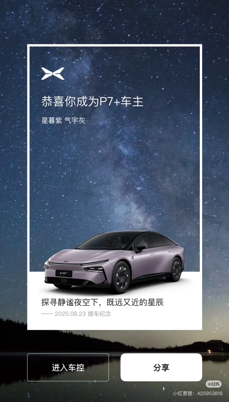 #我的提车作业# 终于提车啦!🔥终于喜提小鹏P7+啦,心情像被点亮一样!当初果断选它,一是被轿跑造型的超高颜值吸引,开出去回头率拉满;二是“智能大空间”太适合我们年轻家庭,日常通勤、周末带家人短途出游,空间都很宽裕;三是智能辅助驾驶特别贴心,让开车变得更轻松。