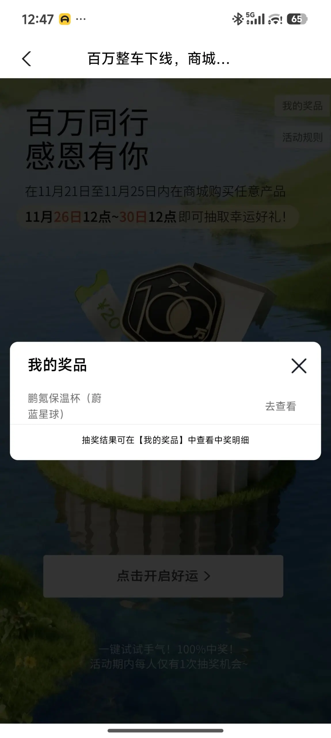 竟然中奖了,太开心了,一百万有我,二百万还会远吗?多多搞活动,多多参与,仿佛生活又多了一个⭕️。