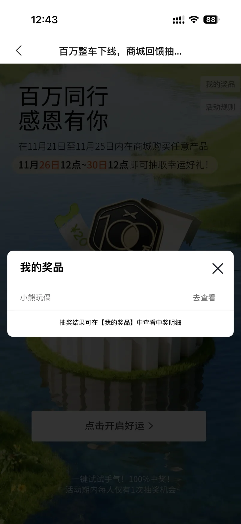 哈哈哈抽到了一个小熊