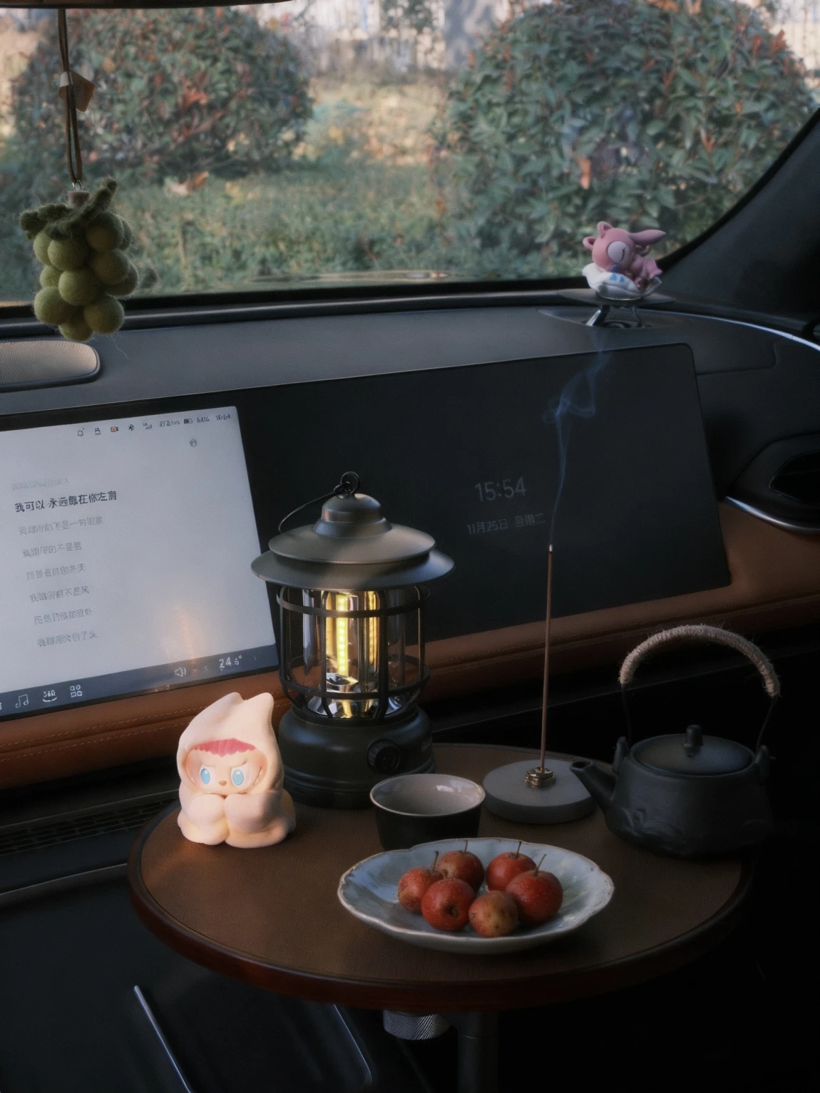 一张小桌板,搭起小鹏G9里更温馨的时刻,是专属移动的客厅。