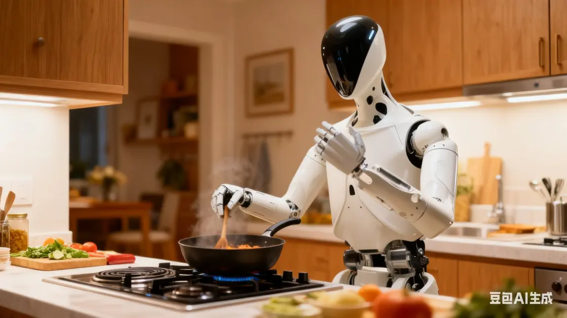小鹏Iron,在家中帮我在厨房烹饪食物,做饭。
