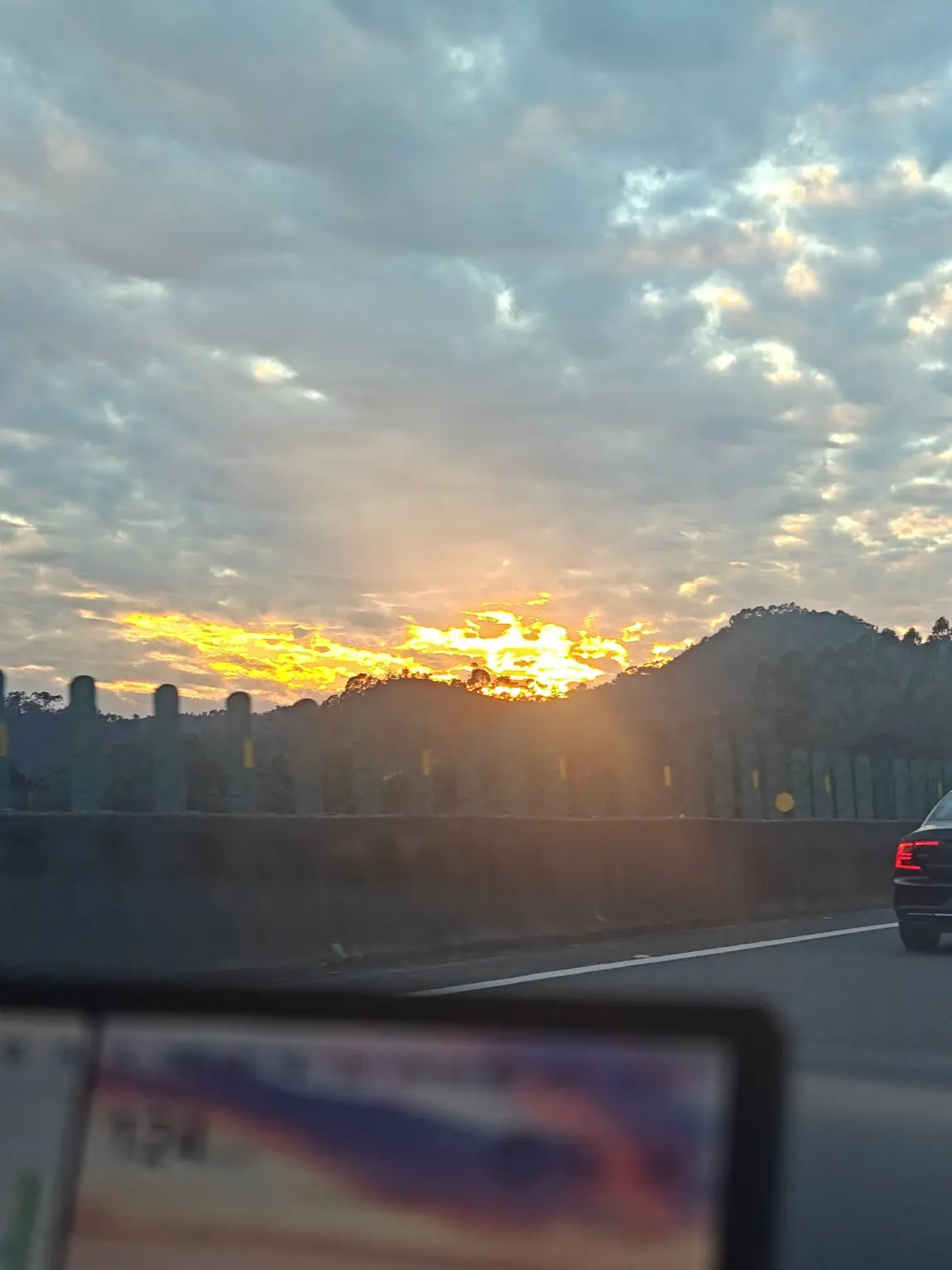 今天打卡「副驾日常」的限定浪漫——赶在日落跌进车窗前,把副驾当成专属观景位:暖橘色裹满半边天,云絮浸成软乎乎的糖,连风都沾着落日的甜,这大概是通勤路上最温柔的「副驾限定」。
