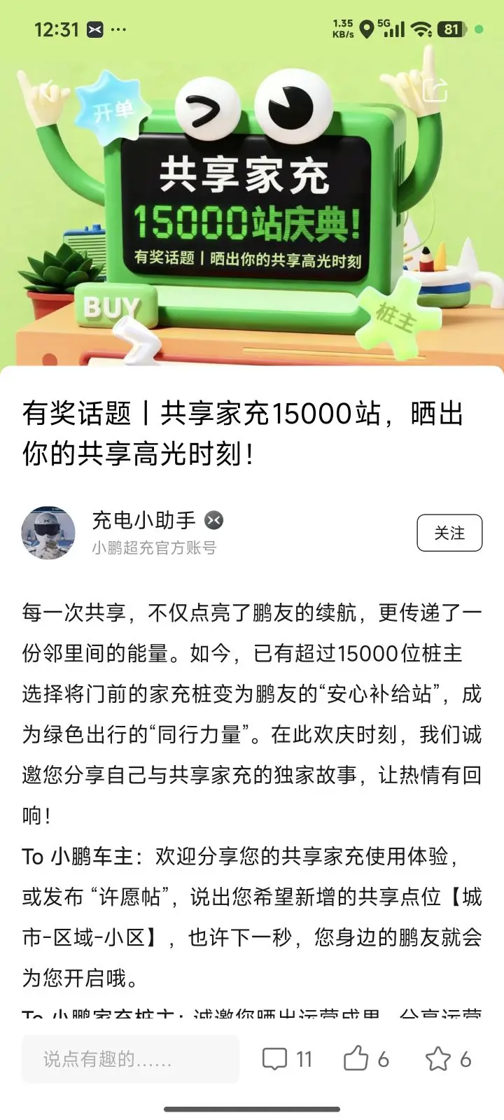 To小鹏车主:可以分享您的共享家充使用体验;也