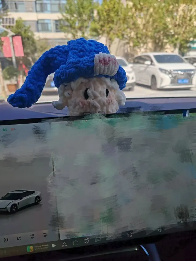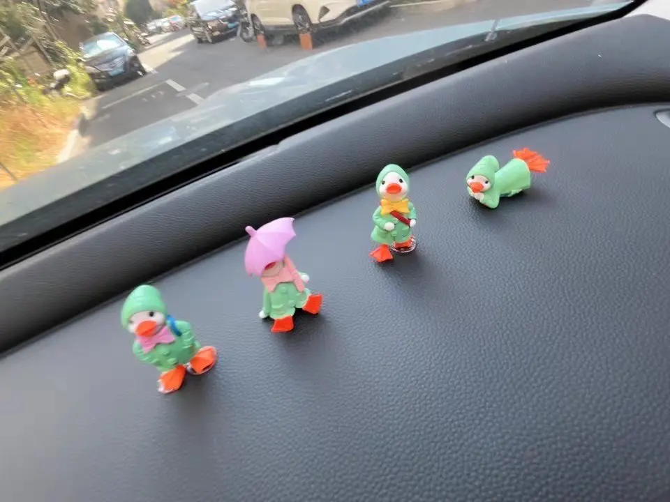 副驾主打简约风,怕影响视线,开车还是安全第一。火星人自己拿毛线挑了一个玩偶,买了个夹子,然后用橡皮筋绑住了etc,不影响充电也能识别,还不留胶。还买了几个小鸭子没贴,回头有空贴吧。