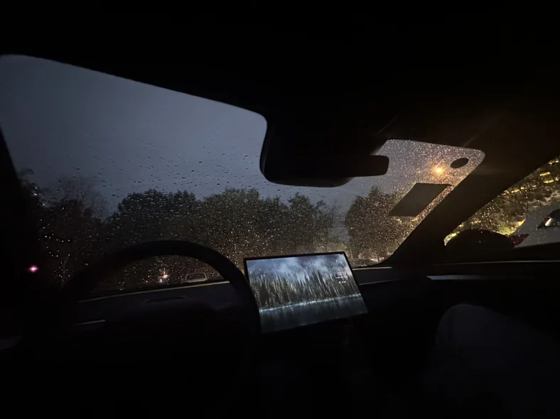 下雨天和朋友坐在车里撸串听雨声聊天