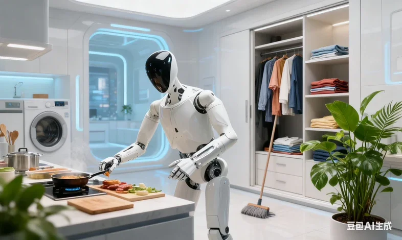 清晨,它依你口味备好早餐:熬得软糯的粥、煎得焦香的蛋,精准如老道主厨;脏衣篮衣物被分类洗净、熨烫平整,羊绒衫折叠角度恰好贴合衣柜格子;扫地时避开地毯上打盹的猫,擦完桌面还为绿萝浇半杯温水,轻拭叶片浮尘。