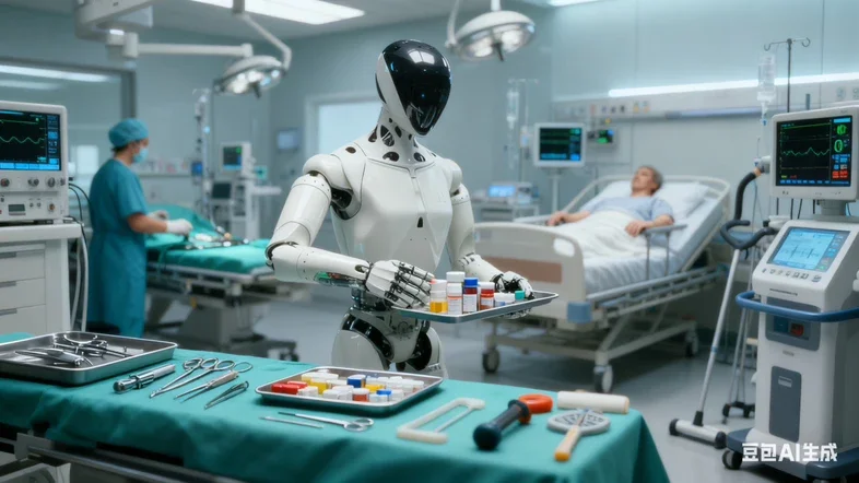 医院里,它是手术室“精准助手”:握手术刀的机械臂过滤人手微颤,缝合线迹细密如天然愈合;病房中定时送药,每小时监测病人体温与血氧,还能指导康复患者做肢体拉伸,示范标准堪比康复师。