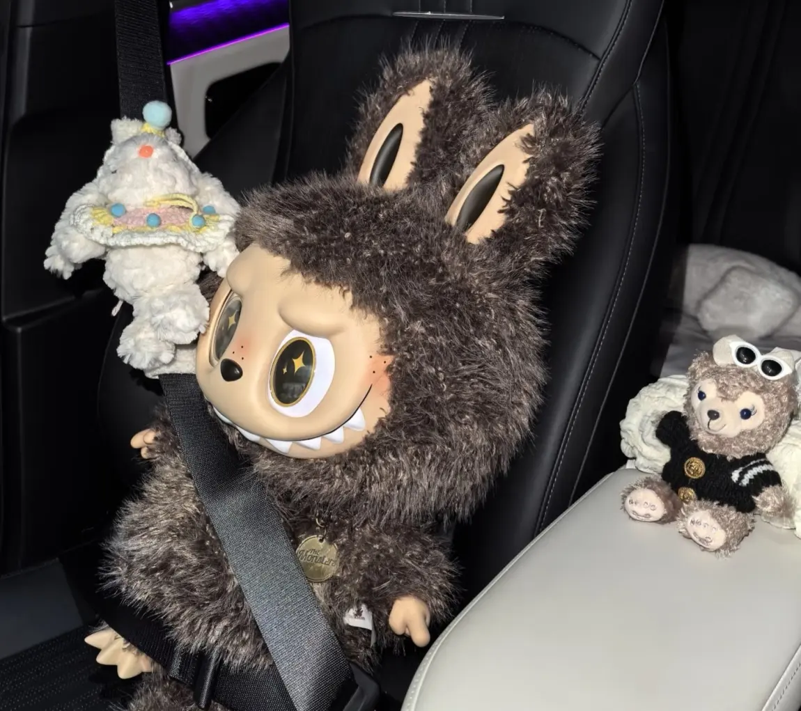 labubu超真的是级酷的,把最爱的labubu放在车子里,向路人炫耀我有超大型labubu!成为停车场上最靓的仔!哈哈哈哈哈!