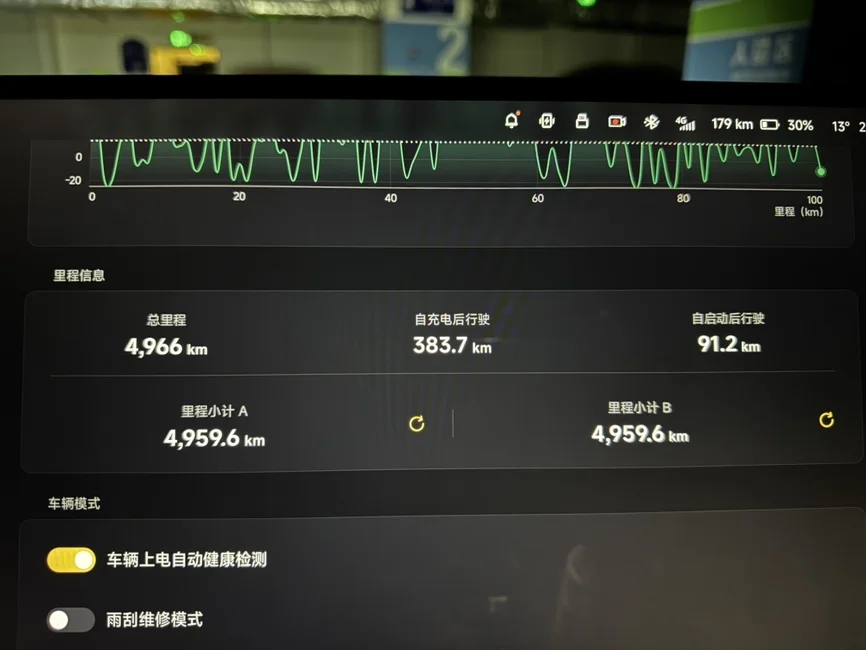 750四驱版,室温15 - 24度,单趟从苍南到杭州,四个人, 383.7 km消耗65%的电。