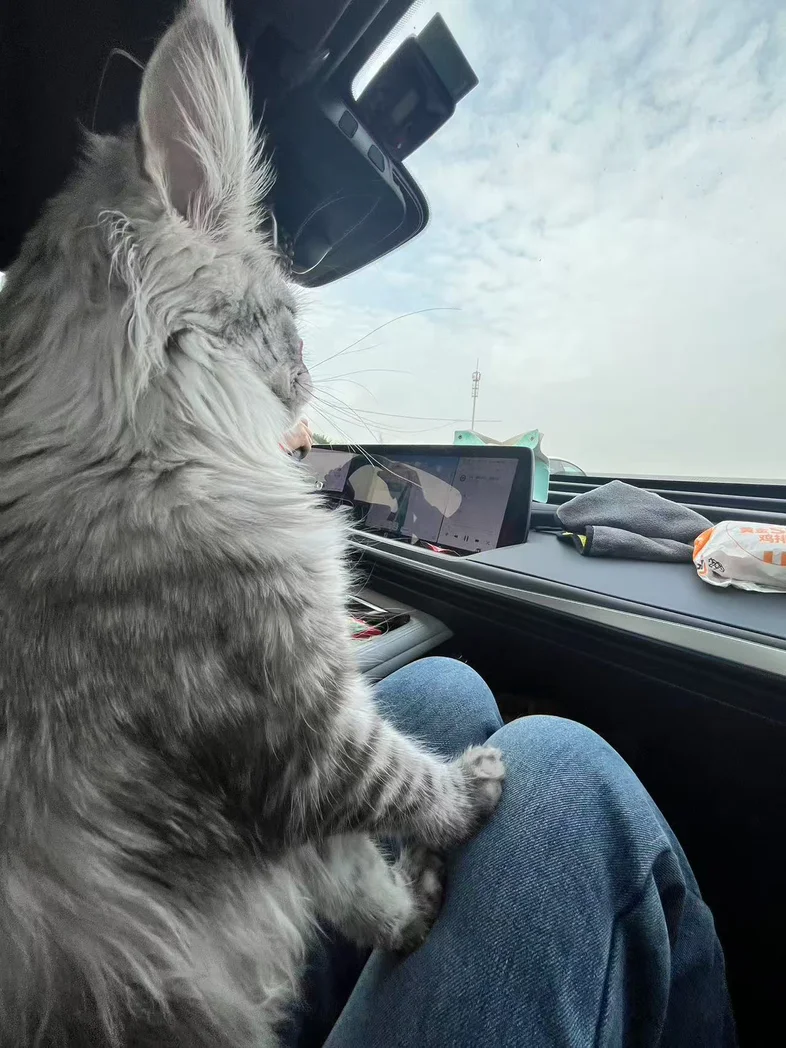 当年提车后,贴上的副驾驶专用座;恋爱后,我们养了一只缅因猫;买相机后,副驾的第一次自拍;等等小p还在不断见证我们的日常与爱情