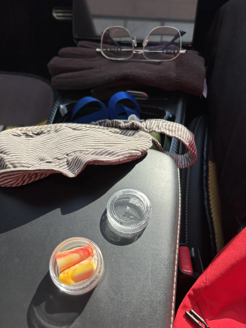 买这个p5很大原因就是为了午休,头两年一直用那个单人床垫,后来还是觉得麻烦,就这么直接躺下。耳塞眼罩是午休必备。冬天停个太阳地儿,也挺暖和。