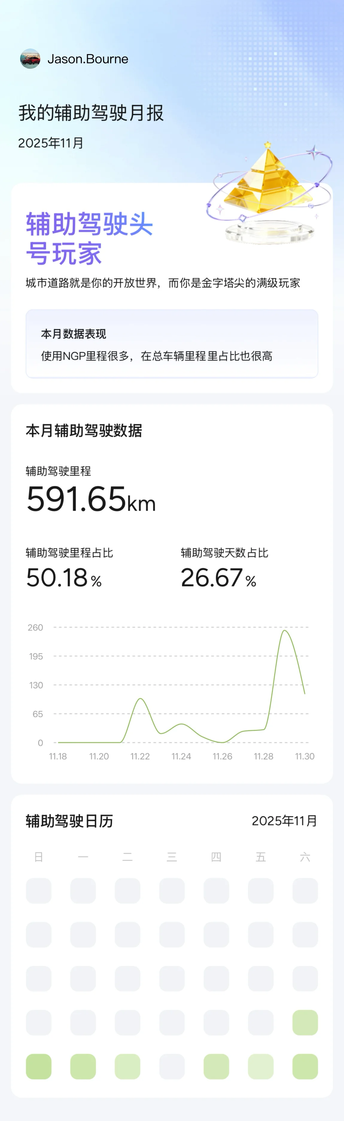 #我的辅助驾驶数据# 还可以,高速有一次突然刹车,其他都很稳
