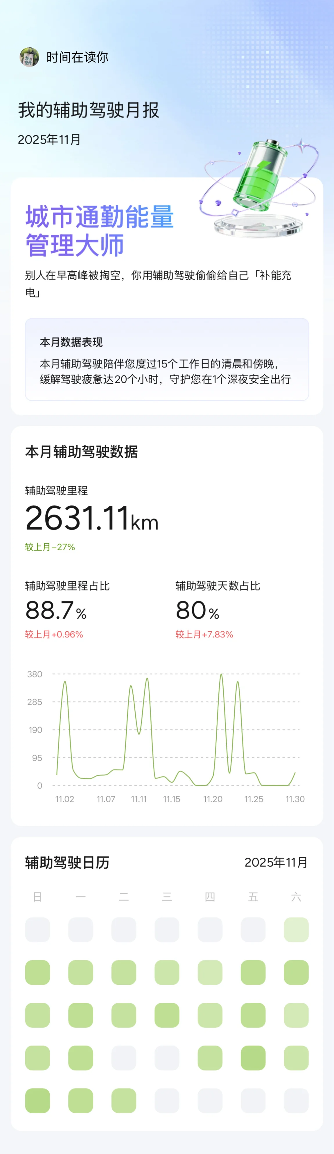 #我的辅助驾驶数据# 11月