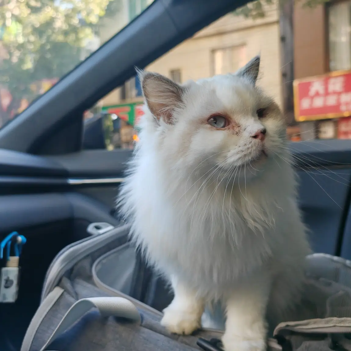 "我的副驾是我的猫咪,它慵懒地蜷缩在座椅上,阳光透过车窗洒在它柔软的毛发上,眯着眼一脸惬意。新车成了它专属的移动小窝,看着它舒服的样子,连开车都变得格外幸福~"