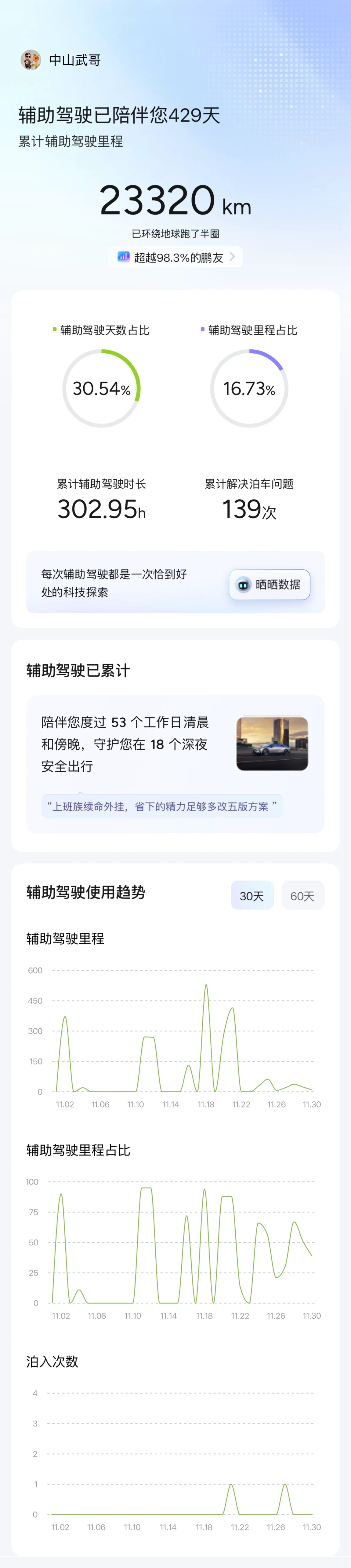 #我的辅助驾驶数据# 2025年11月