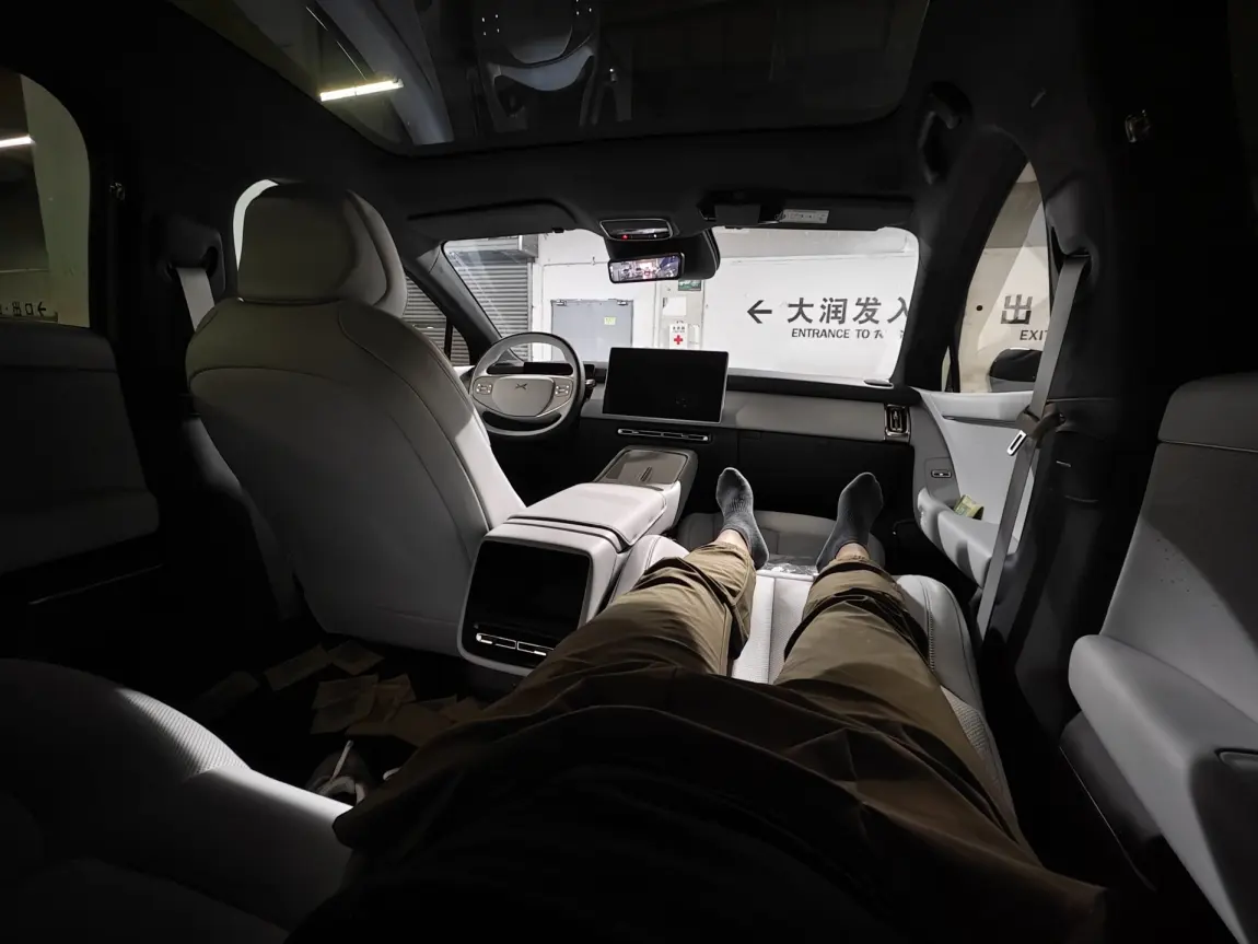 我的小鹏p7+副驾是我午休的私人空间,座椅放倒和后排可以成连起来成为一个大床,空间宽敞,再配合氛围灯和睡眠空间模式,轻音乐一放,太惬意了!