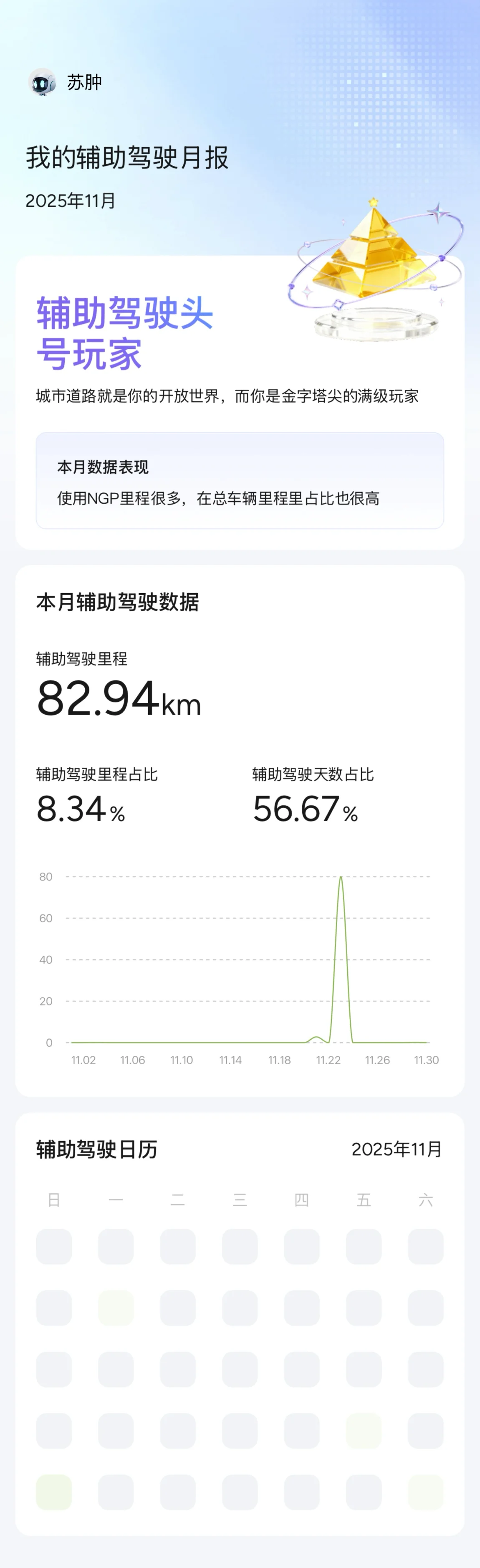 #我的辅助驾驶数据# 第一次使用,体验感OK